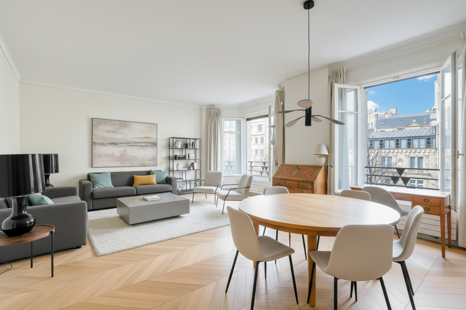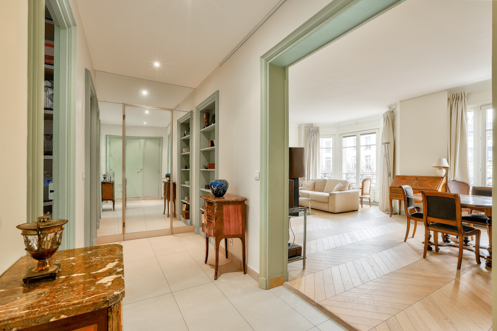 Vue dégagée. Distriubtion optimale. Depuis les fenêtres, une vue partielle sur l’Arc de Triomphe ajoute une touche de prestige supplémentaire, une cerise sur le gâteau qui rappelle l’exceptionnalité de ce lieu.